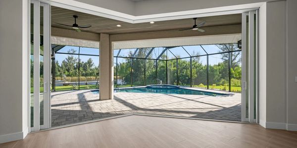 Enjoy panoramic views of the canal and preserve can be appreciated through the wall of glass sliding doors adjoining the kitchen and dining room.