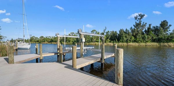 Expansive dock allows friends and neighbors to visit via the areas waterways, also perfect for a lazy afternoon of fishing. The 13000 lbs boat lift allows safe storage for your boat when not in use.